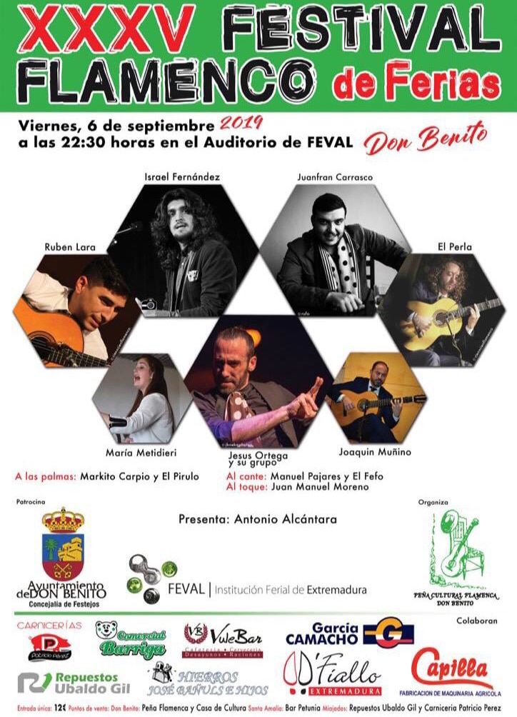 Ya es oficial el XXXV festival flamenco de Ferias de Don Benito que se celebrará el Viernes 6 de Septiembre 2019 a las 22:00 Horas en el Auditorio de Feval.