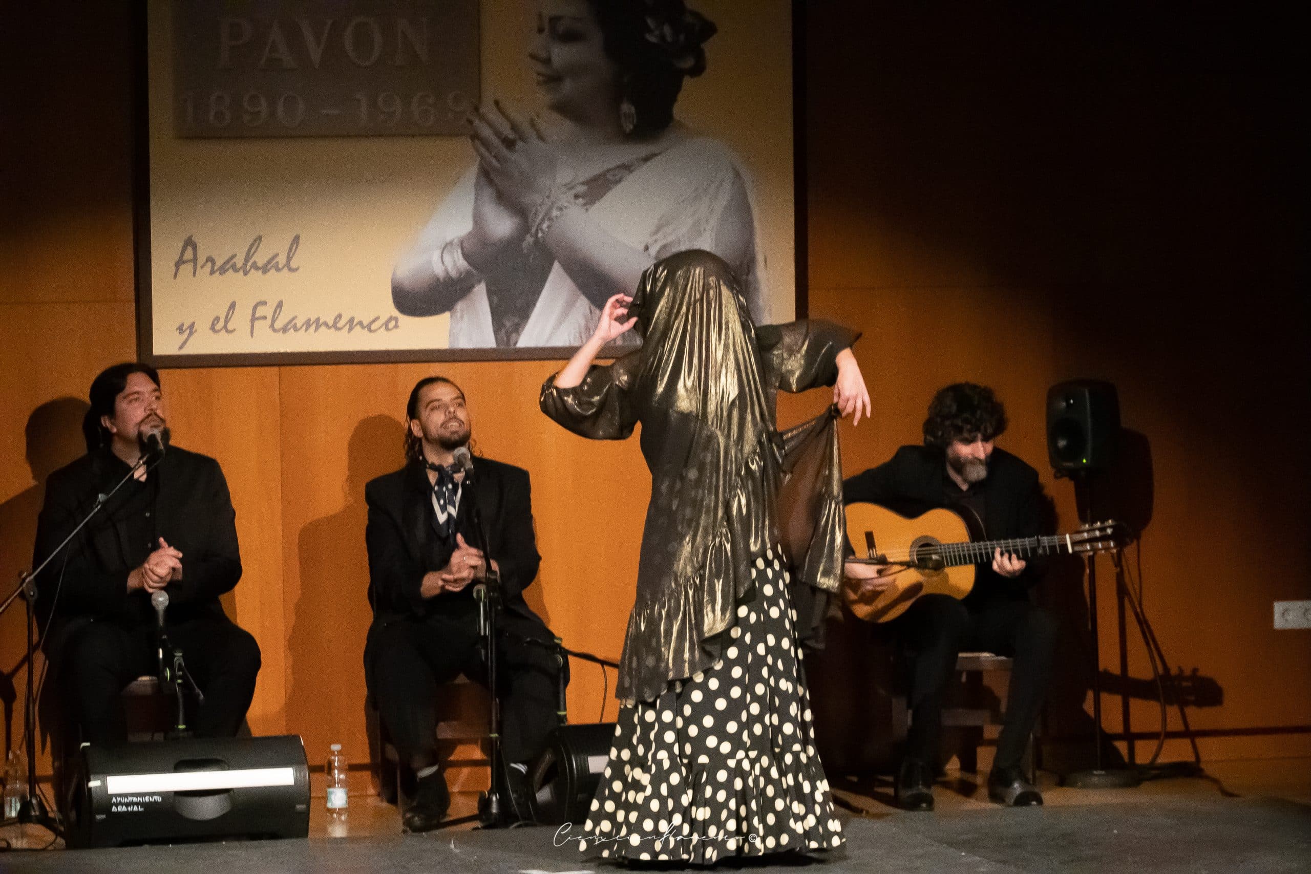 Después, apareció el flamenco. Primeramente Juan Campallo en solitario, nos deleitó con un espléndido toque por granaínas, presagiando lo que vendría después… Con sones por seguiriya apareció Adela Campallo entre el público, para brindar al público una actuación que será muy recordada en Arahal. Adela transmitió tanto con su baile, que hubo lágrimas de emoción al verla bailar. Seguiriya para enmarcar.