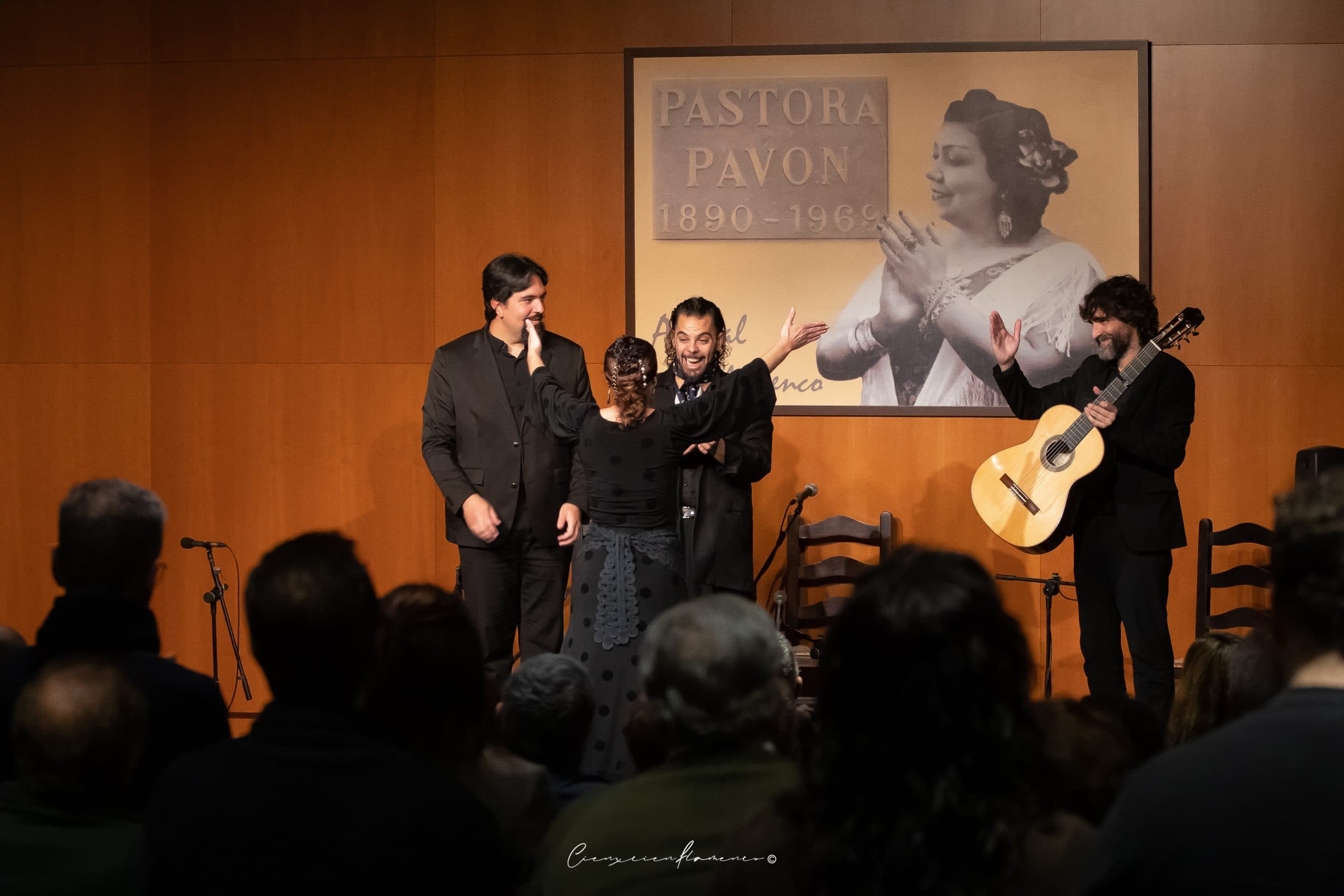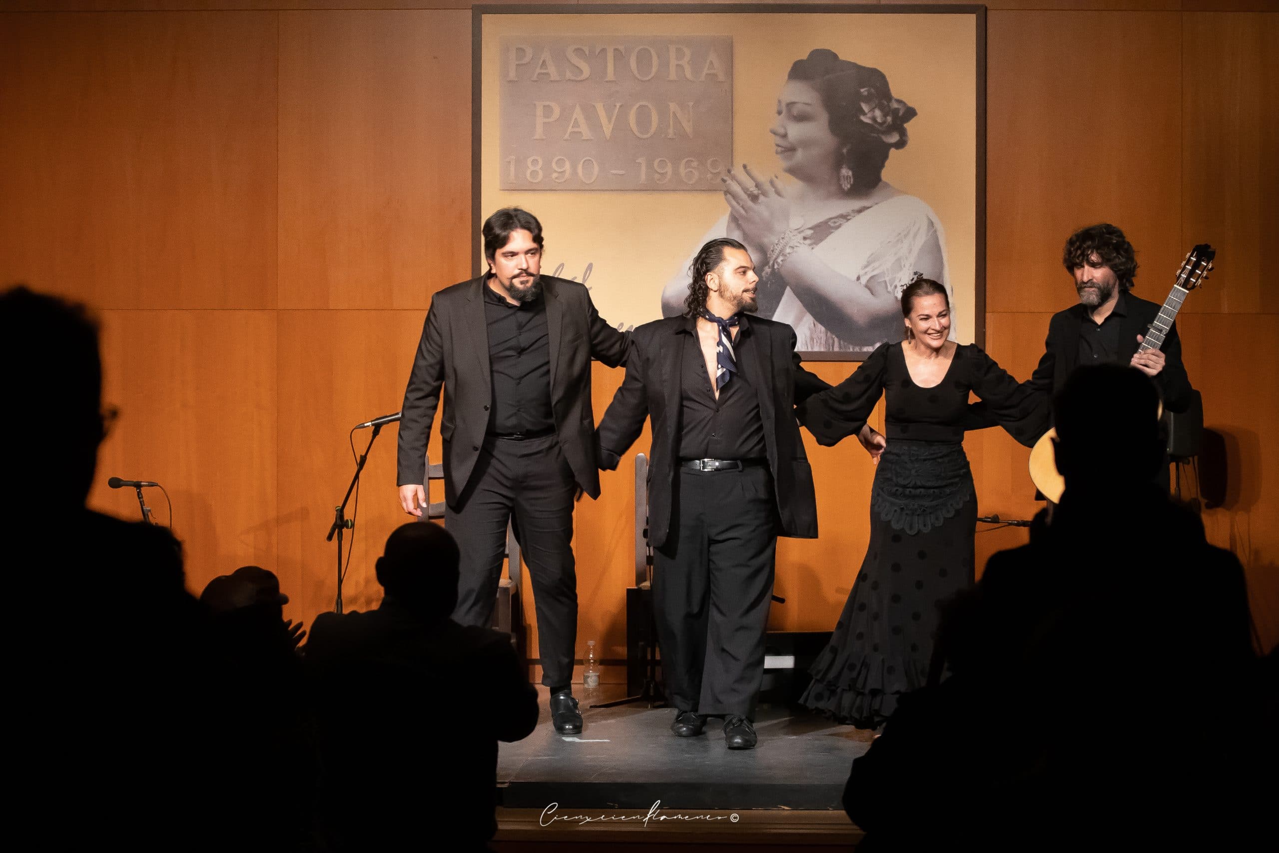Es un lujazo tener el acompañamiento de su hermano Juan a la guitarra, y de Manuel de la Nina y Jonatan de los Reyes al cante. Luego Manuel y Jonatan interpretaron unos cantes por tangos, dejando su impronta personal en ellos. Y el final lo puso Adela Campallo haciendo un baile por soleá, para volver a demostrar su elegancia y maestría.